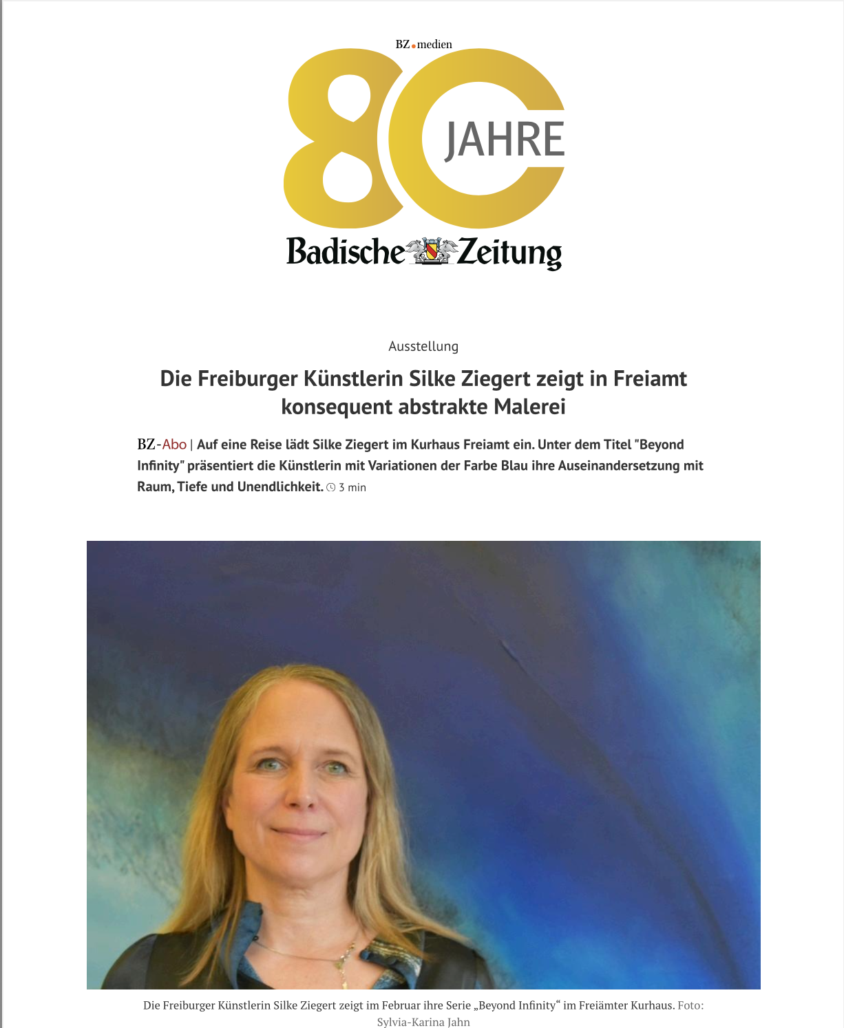 Bildschirmfoto 2026-02-05 um 19.23.02 Published 5. Februar 2026 at 1226 × 1494 in Badische Zeitung: Bericht von Benedikt Sommer über „Beyond Infinity“ von Silke Ziegert (Februar 2026) / Next →